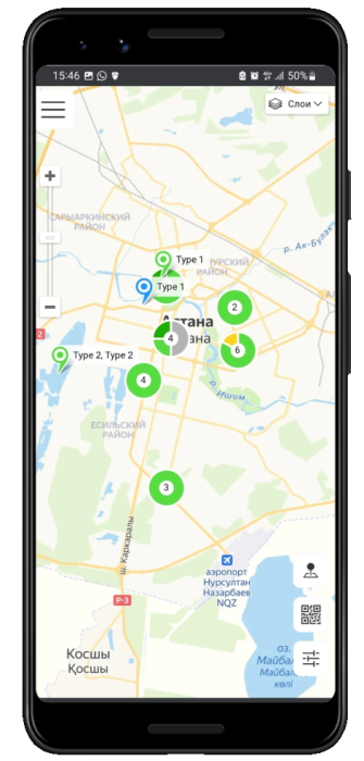 | № 582 | г. Астана, ул. Туркестан, 12/1 | Детский сад Асыл, № 582, 7 kWh | Свободен Type 1 |