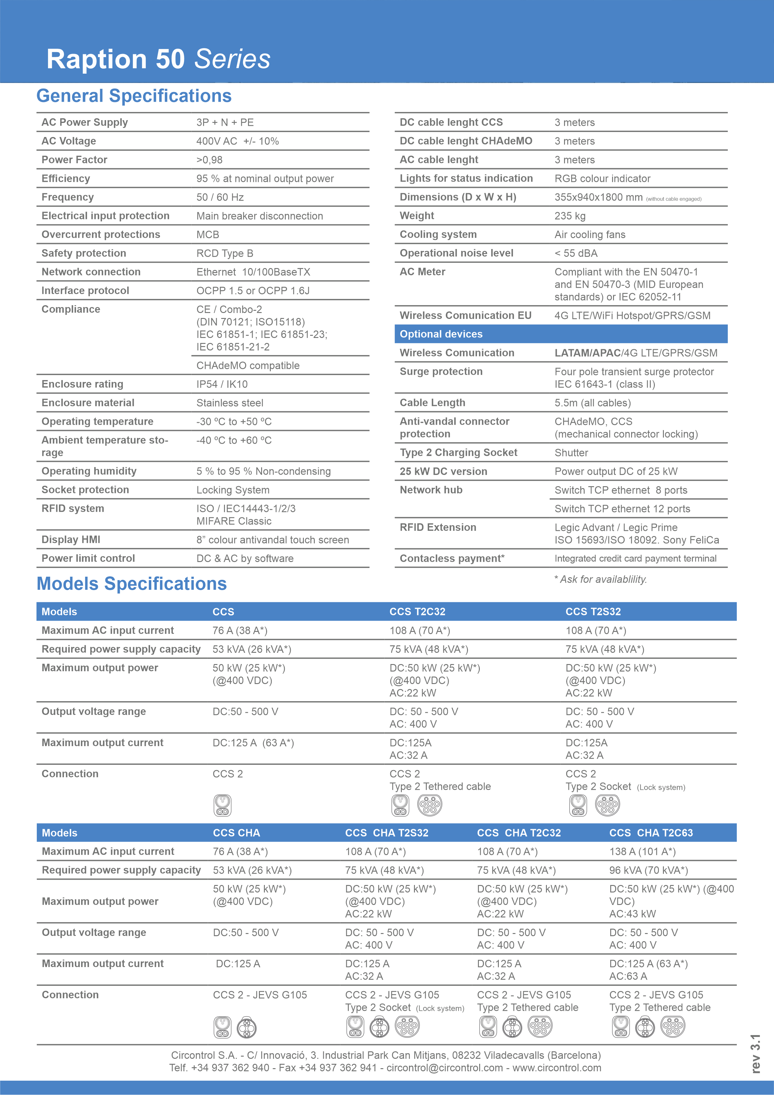 RAPTION 50 CCS CHA T2S32 — это линейка мощных зарядных станций постоянного тока , предназначенных для установки как в общественных , так и в частных местах, где электромобили должны заряжаться как можно быстрее. Зарядная станция для быстрой зарядки с разъемами CHAdeMO, COMBO CCS и Type, работает с мощностью до 50 кВт и высоким выходным напряжением до 500 В постоянного тока. Устройство имеет интерактивный экран для удобного взаимодействия с пользователем и возможности связи (Ethernet, 4G) для удаленного ее управления.
