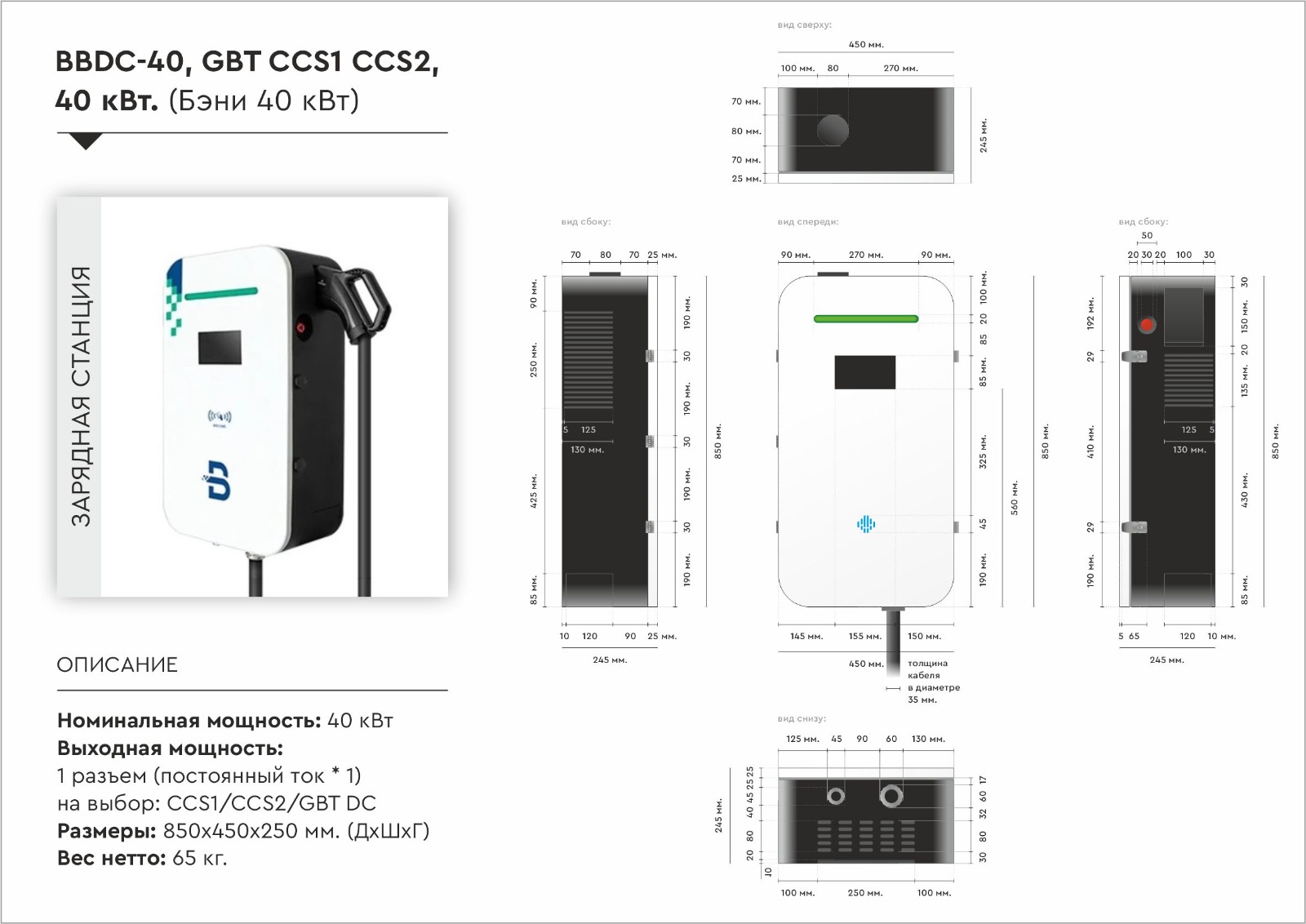 Зарядная станция BBDC-40, GBT DC CCS1 CCS2, 40 кВт.